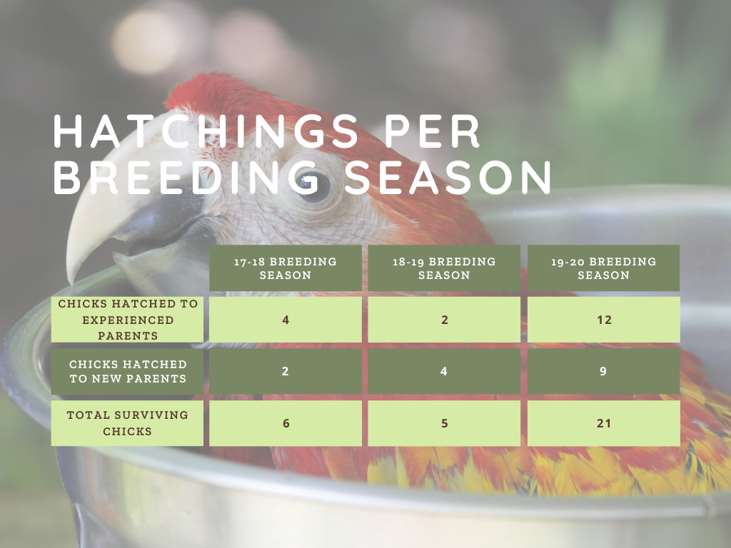 Overall, we are proud to announce a very productive breeding season. Thank you all for your continued support of Macaw Recovery Network. Without our patrons and supporters, improvements to our practices would not be possible. We thank you all and cannot stress enough that our successes are yours to celebrate as much as they are ours.