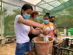 All the while, we are germinating Mountain Almond seeds in our homes and we meet each Friday with the MRN team to go over our previous week’s work and organize our tasks for the week ahead. Justina, Elvida, Lilliam and Carmen are in charge of reforestation work and will manage the nursery when it opens. Maria Elena and Yendry are our environmental educators. They are currently developing workshops for young people, ages 7 to 17.